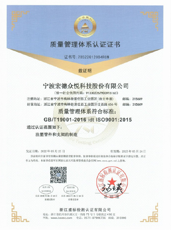 质量管理体系认证证书